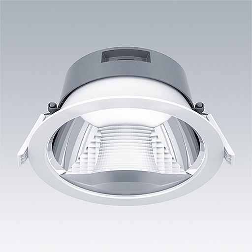 A highly efficient and sustainable LED downlight with low height with asymmetrical beam for vertical illumination. Suitable for mounting in ceiling thicknesses of 1 to 40 mm and Ø200mm cut-out with spring clips. Remote, pluggable, Fixed output LED driver with DC functionality, adjustable 50-100%, NFC configurable.Loop in - loop out possible. Body: Die-cast aluminium for highly efficient thermal management with recycling content >90%. Diffuser: polycarbonate. Reflector and trim: polycarbonate smooth reflector in high glossy finish for improved glare control in office applications. Class II electrical, IP54_IP20. Complete with 3000K LED