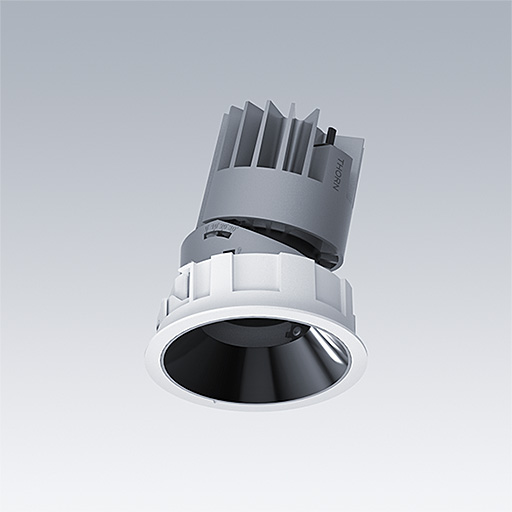 Ultra-flexible and reliable downlights offer pleasant user experience for retail and hospitality application. Cut-off angle > 30°. 5 sizes available, cutout: Φ55mm, Φ75mm, Φ100mm, Φ125mm and Φ150mm. Total luminous flux: from 480lm to 4500lm, luminaire input wattage: from 7W to 46W, CCT 4000K. Long 50,000hrs lifetime. CRI > 90, SDCM 3. Class II electrical, IP20/54. Suitable for recessed mount.