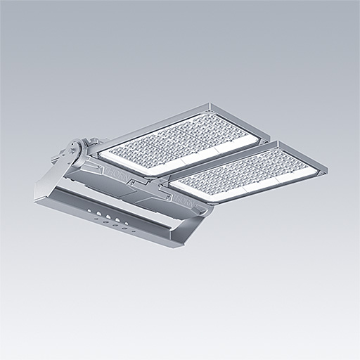 A compact, lightweight, general purpose LED area floodlight. With large x 2 body. LED converter driving 216 LEDs at 500mA with Asymmetrical 40° light distribution. IP66, IK08, Class I electrical. Body: Die-cast aluminium (EN AC-44300), Light grey 150 sanded textured (close to RAL9006).. Enclosure: 5mm thick toughened glass. Reversable mounting stirrup supplied, Complete with 4000K LED.