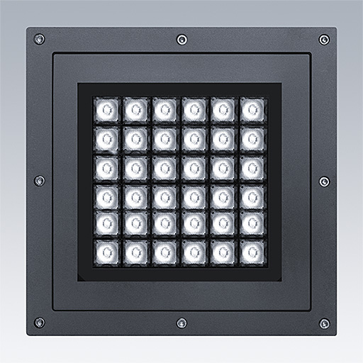Axyl Opera Do, a floor recessed, architectural LED luminaire for decorative facade lighting, with asymmetrical distribution. Class I electrical.. DALI-2 dimmable LED driver. IP67, Impact strength: IK10. Housing: Die-cast aluminium, powder coated textured anthracite. Working ambient temperature: -20°C to +35°C. Complete with 3000K LED..