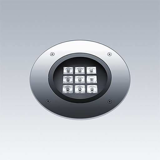 Cesar Opera, drive over a floor recessed, LED luminaire for decorative facade lighting, asymmetrical distribution.. DALI-2 dimmable LED driver. Class I electrical, IP67, Impact strength: IK10. Housing: Die-cast aluminium, unpainted. Working ambient temperature: -20°C to +45°C. Complete with 2700K LED.