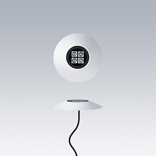 Cesar Bow a surface mounted, LED luminaire for decorative facade lighting, wide beam distribution. Class III electrical. Remote DALI2 driver. IP67, Impact strength: IK07. Housing: Die-cast aluminium, powder coated textured white. Working ambient temperature: -20°C to +40°C. Complete with 4000K LED.