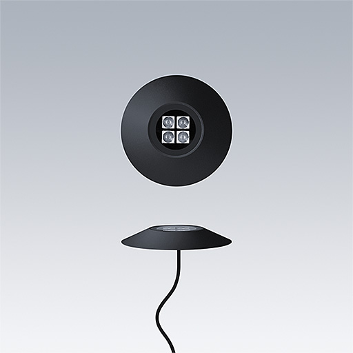 Cesar Bow a surface mounted, LED luminaire for decorative facade lighting, wide beam distribution. Class III electrical. Remote DALI2 driver. IP67, Impact strength: IK07. Housing: Die-cast aluminium, powder coated textured black. Working ambient temperature: -20°C to +40°C. Complete with 4000K LED.