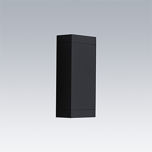 Axyl Glow, a wall mounted, architectural LED luminaire for decorative facade lighting, 2 window with wide beam up and down distribution. Class II electrical.. Fixed output LED driver. IP65, Impact strength: IK06. Housing: Die-cast aluminium, powder coated textured black (close to RAL9005). Working ambient temperature: -20°C to +50°C. Complete with 2700K LED..