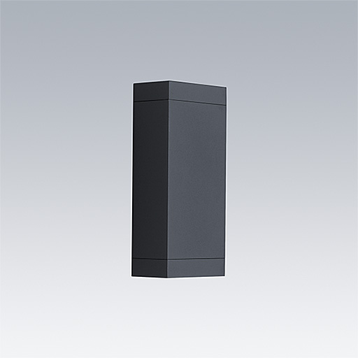 Axyl Glow, a wall mounted, architectural LED luminaire for decorative facade lighting, 2 window with wide beam up and down distribution. Class II electrical.. Fixed output LED driver. IP65, Impact strength: IK06. Housing: Die-cast aluminium, powder coated textured anthracite. Working ambient temperature: -20°C to +50°C. Complete with 4000K LED..