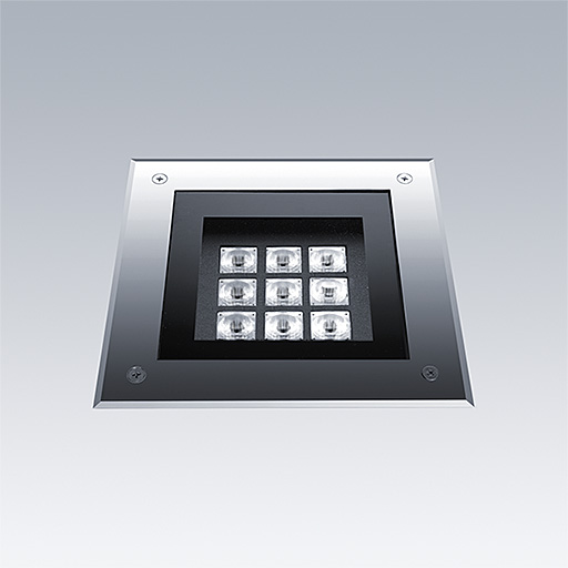 Axyl Opera montage encastré dans le sol, luminaire à LED pour l'éclairage décoratif des façades, avec et distribution asymétrique. Classe électrique I.. gradable DALI-2 Driver. IP67, Résistance aux impacts : IK09. Boîtier : aluminium Moulage sous pression, sans peinture texturé acier inoxydable. Température de service de Température ambiante : -20°C à +40°C. Livré avec LED 3 000 K..