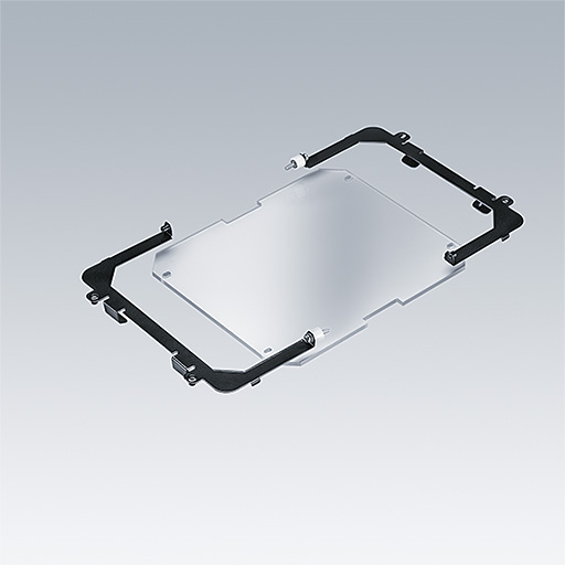 Accessoire utilisé pour augmenter la résistance au choc du verre conformément à IK10. Peut être installé avant ou après l’installation sur place.