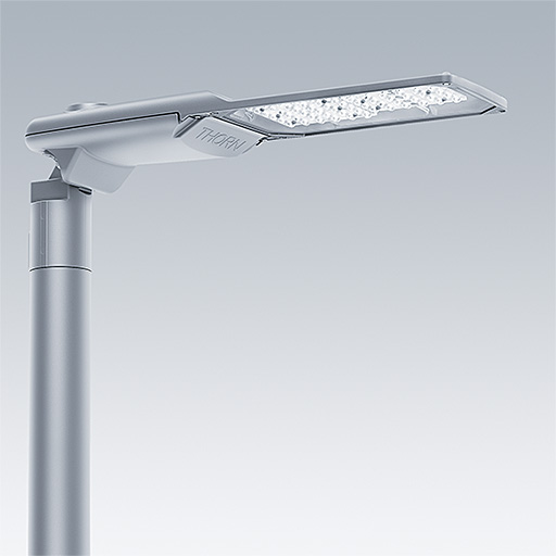 Lanterne d’éclairage routier LED moderne (Medium) avec 48 LED alimentées en 500mA avec une optique Route étroite. Programmable Driver. Classe électrique II, IP66, IK09. Corps : aluminium (EN AC-44300) Moulage sous pression, thermopoudré gris clair 150 sablé texturé. Emmanchement : aluminium (EN AC-44300), Moulage sous pression sans peinture. Fermeture : verre ép. 5 mm. Visserie : Acier à ressorts. Livré avec un adaptateur d’emmanchement Ø 60 mm qui convient pour montage top (inclinaison 0°/5°/10°/15°/20°) ou latéral (inclinaison -15°/-10°/-5°/0°/5°/10°/15°). Equipé d'un 50% circuit de réduction de puissance, qui entre en vigueur 3 heures avant et 5 heures après un minuit calculé. Livré avec LED 4 000 K. Protection contre les surtensions : 10 kV en mode commun single pulse et 8 kV en mode commun multipulse; 6 kV en mode différentiel multipulse. Si un système DALI est connecté: 6 kV en mode mode commun et mode différentiel multipulse.