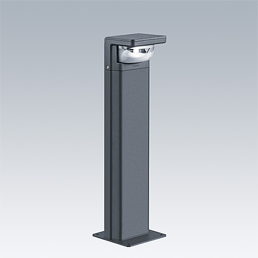 Borne LED sur semelle de 900 mm de haut, incorporant la technologie Flat beam® de Thorn. 1 LED alimentée en 350mA. intégré Driver inclus. Classe électrique II, IP66, IK10. Corps : Moulage sous pression aluminium (EN44300, compatible avec l'installation en bord de mer), thermopoudré, texturé gris anthracite 900 sablé. Vasque : traitement anti-UV Polycarbonate (PC), semi-dépoli. Fixations : Acier inox. Livré avec LED 3 000 K.