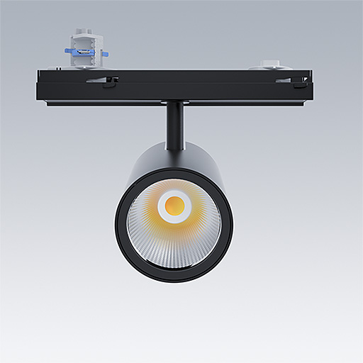 Version 3GU : le spot peut être installé et démonté sans outils, via un adaptateur pour piste triphasée