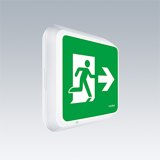 Luminaire à panneau de sécurité LED carré, plafonnier. Luminaire alimenté par batterie individuelle pour 1 h d’autonomie en régime permanent ou non permanent, test effectué automatiquement (Autotest) par le luminaire, surveillance centralisée DALI en option, affichage de l’état du luminaire via la LED d’état. Interface NFC pour l’adressage, la configuration et la maintenance via PROset Pen (article : 22170290) ou PROset app., adressage également possible autrement visuellement ou via l’adressage EZ. Modes non-maintenu et maintenu réglables via cavalier et interface NFC (pour les luminaires Autotest, en cas de luminaires contrôlés via DALI à faire sur le système). Alimentation : 220-240 Vca (± 10 %), 50/60 Hz. Corps : moulé par injection Polycarbonate (PC), blanc (RAL 9016). Diffuseur : opale Polycarbonate (PC), avec pictogramme d’une issue de secours imprimé flèche directionnelle (droite) conforme à ISO 7010. Rétroéclairage uniforme du pictogramme, luminance > 500 cd/m² dans la partie blanche et 200 cd / m² en moyenne en mode secteur (conformément à DIN 4844), 2 cd / m² minimum en mode d’urgence (conformément à EN 1838). Distance de reconnaissance conforme à EN 1838 : 44 m. Classe électrique II, IP65, Résistance aux impacts : IK10. Température ambiante : 0°C à +35°C. Convient pour fixation directe au mur. Câblage à piqûre/repiqûre possible pour les câbles jusqu’à 2,5 mm². Compatibilité BESA. Batterie lithium fer phosphate (LFP) garantie trois ans Certificat alimentaire (à utiliser dans les zones avec des aliments totalement emballés). Luminaire câblé avec des fils sans silicone et sans halogènes. Luminaire avec le symbole D (pour utilisation dans les environnements où l’accumulation de poussière conductrice sur le luminaire peut être attendue).
